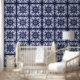Papier Peint Indigo Motif de carreaux méditerranéens bleu et bl