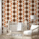 Papier Peint Ivory Tan Brown Burn Orange Ogee Wave Motif