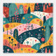 Venez vous imprégner d'un monde enchanteur avec ce motif paysager d'art folklorique et ludique, orné de collines ondoyantes, de fleurs sauvages délicats et d'éléments botaniques. Le design présente une palette de couleurs vibrantes, turquoise, corail, jaune moutarde et rose vif, créant une scène de jardin rêvée. Chaque colline est décorée de fleurs charmantes, de tiges fantaisistes et d'accents géométriques, parfaits pour la décoration de pépinière, les produits pour enfants, ou tout espace qui a besoin d'une touche de charme imaginatif. Ce design d'art populaire moderne allie simplicité d'inspiration scandinave et motifs botaniques ludiques.