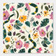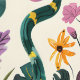 Cette oeuvre présente un décor de jardin fantastique et enchanteur, avec une variété de fleurs vibrantes, de feuilles et d'éléments ludiques posés contre un arrière - plan crème tendre. La composition est remplie de verdure luxuriante, de fleurs florissantes en rose, jaune et violet, et l'aspect occasionnel d'un serpent tissant à travers le feuillage. Le design allie des éléments de nature à une touche d'imaginaire, créant une atmosphère animée et imaginative. L'utilisation de couleurs riches et saturées et de formes dynamiques ajoute au sens du mouvement et de la vitalité de la scène.