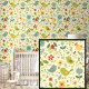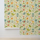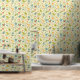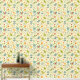 Papier Peint Jolies fleurs printanières Oiseaux verts sur jaune