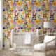 Papier Peint Lapins lapins dans l'aquarelle des fleurs