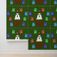 Ce superbe papier peint à motifs présente un mignon fantôme de Noël aux yeux noirs et à la bouche ouverte. Le fantôme porte un casquette rouge et blanc festif avec un pompon sur le dessus. Il y a des cadeaux brillants rouges, bleus et verts autour du fantôme. Un message en rouge festif sous le fantôme dit "Le Fantôme des présents de Noël" en lettres capitales en gras. Ce design festif amusant convient à tous les âges.