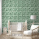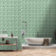 Ce papier peal en vinyle peal-and-stick présente une conception de feuillage appelée False Indigo par le créateur. Cependant, c'est juste un produit de l'imagination des artistes et ne ressemble pas à un faux plante indigo. Les couleurs sont vertes et crème. Utilisez-le dans n'importe quelle pièce. De l'Oregon Tile Maker Fay Jones Day