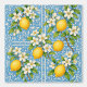 Papier Peint Lemon Watercolor Blue Mediterranean Tile Pattern