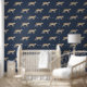 Papier Peint Léopard Botanique Marine Bleu Tan Nature Aquarelle