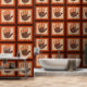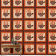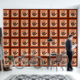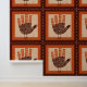 L'illustration classique de dinde joueuse de SlipperyJoe pour la fête de Thanksgiving idée artisanale main réalisée pouce tête complète bec œil doigts deviennent ses plumes textes variés liés à la gratitude reconnaissant famille amis amour nourriture rassemblement familial joie santé foi artistique chaleur rustique ambiance saisonnière cadeaux de fierté gay LGBTQIA fond carré orange et beige texturé