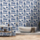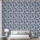Ce luxueux papier peint présente un ensemble de lions et d'arbustes ressemblant à de la savane et de style bleu-rose.