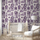 Ce luxueux papier peint présente un ensemble de lions et de statues dans le style violet