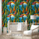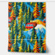 Campeurs RV rouge rétro en couleurs vintages de la nature bleu, orange, rouge et vert. Cool bâton et papier peint écorce pour ceux qui aiment le camping.