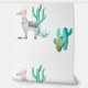 Papier peint mexicain avec lama, cactus et fleurs. Parfait pour une garderie ou une salle de jeux.