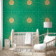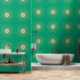 Elégant brillant faux soleil doré Design minimaliste de menthe solaire, avec un soleil de couleur or mystique et rayons symbole magique, composé d'un cercle et des lignes géométriques formes, sur un arrière - plan vert menthe. Cette oeuvre d'art du soleil brillant céleste apporte une énergie positive et heureuse.