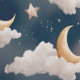 Transformez votre espace en sanctuaire céleste avec cette lune enchanteresse et ce design nocturne étoilé. Doté de lunes douces au croissant entourées de nuages moelleux et d'étoiles scintillantes sur un arrière - plan bleu profond, ce motif dégage une atmosphère de rêve et de calme. Idéal pour les chambres, les nurseries ou tout espace cosy, ce design ajoute un charme lunatique et céleste à votre décor.