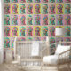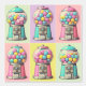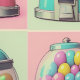 Un motif pop art pastel ludique et lumineux avec des machines à bulles de style vintage.