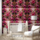 Augmentez instantanément votre espace avec ce magnifique papier peint aux roses roses roses vives et aux riches accents d'or. Notre conception de peaux et de bâtons assure une application rapide et sans désordre et une suppression facile pour un look vraiment luxueux.