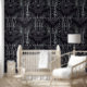 Monotone Black and Grey Gothic Haunted Maisons et chauves-souris Fond d'écran | Vibes Mystérieuses. Transformez votre espace avec ce papier peint gothique insolite rempli de mystérieuses vibes. Présentant un design monotone noir et gris, ce papier peint présente des maisons hantées et des châteaux avec des chauves-souris volant autour, sur fond de buissons et de brambous épineux. Parfait pour ceux qui aiment l'esthétique gothique. Idéal pour créer une atmosphère éffrayante dans n'importe quel espace, ce papier peint est parfait pour les décorations d'Halloween, les chambres à thème, ou quiconque apprécie un style gothique. Décor d'Halloween, design de chauves-souris, papier peint étrange.