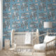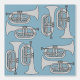 Gris cornes de baryton de marche dans un motif de crosshatch contre un arrière - plan bleu est un instrument de musique unique pour les musiciens de basse laiton, les professeurs de musique et les élèves de l'école dans la bande de marche.