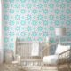 Papier Peint Marguerite délicate blanche et turquoise, point mo