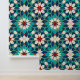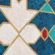Marbre bleu marine, turquoise, blanc et rouge motif en mosaïque marocaine avec bordure en faux or.