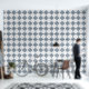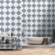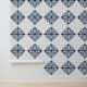 Papier Peint Marocain Quatrefoil Bleu et Marbre blanc