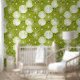 Papier Peint Mid Century Moderne Starburts Olive et blanc