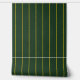 Dark green wallpaper with vertical yellow pinstripes pattern.