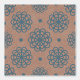Fleurs de mandala géométriques bleues turquoises sur texture mousse mocha arrière - plan.