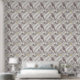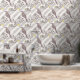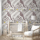 Ce papier peint présente un motif avec des lignes en diagonale, des oiseaux et des fleurs jaunes pour les amoureux de la nature.