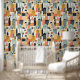 Papier Peint Modèle d'architecture audacieuse Orange et Mint Gr