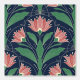 Modern Art Deco style wallpaper with symmetrical red tulip flowers on a navy blue background for a timeless classical look of your home