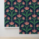Papier Peint Modern Art Deco Boho Red Floral on Navy Blue