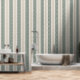 Papier Peint Modern Green Ticking Stripe Linen Texture