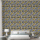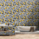 Papier peint avec des symboles contemporains motif en jaune, gris et noir.