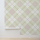 Ce papier peint peel and stick présente une conception moderne du motif pique-nique classique en vichy style pique-nique plaid en vert clair pâle et rose mauve.