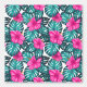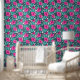 Papier Peint Monstera feuilles et Hibiscus Turquoise et rose