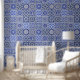 Papier Peint Mosaïque Carrelée Bleue - Style Vintage Méditerran