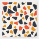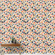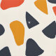 Cette oeuvre présente un motif ludique et abstrait, composé de formes irrégulières comme des galets disséminées dans un arrière - plan crème. Le design utilise une palette de couleurs chaleureuse et d'inspiration rétro, composée de bleu marine, d'orange brûlé et de jaune moutarde. Les formes varient en taille et en orientation, créant un arrangement dynamique et spontané qui évoque un sentiment de mouvement et d'énergie. La simplicité des formes, associée aux couleurs audacieuses, donne à la motif une ambiance moderne du milieu du siècle, rappelant les textiles et le design vintages.