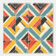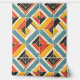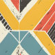 Cette oeuvre présente un motif dynamique et texturé de formes chevrons et triangulaires disposées en mosaïque audacieuse. Le design présente une palette de couleurs vives mais terreuses, turquoises, jaune moutarde, rouge et noir, dressées contre un arrière - plan crème. Le motif est affligé de rayures subtiles et de textures rugueuses, lui donnant un aspect rustique et usé. L'agencement géométrique crée un sens du mouvement et de la profondeur, tandis que les lignes audacieuses et les couleurs contrastées évoquent un sens de l'énergie et de la vitalité, rappelant les textiles vintages et les motifs artisanaux.