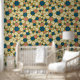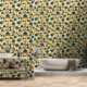 Papier Peint Motif à fleurs - Bleu, Vert olive, Rose et Crème
