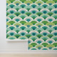 Gras couleur vert arche poisson échelle géométrique motif plusieurs nuances de vert, crème et turquoise bleu turquoise. Pallette couleur d'inspiration nature et calme, parfaite pour le design biophile. Rétro mais encore moderne, cette motif audacieuse est parfaite pour les murs avec accent. Le papier peint Peel and stick vous permet de mettre à niveau votre petit espace maison décoration et personnaliser votre location avec votre design unique esthétique. Plus de boîtes blanches ennuyeuses !
