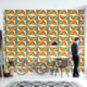 Papier Peint Motif Abstrait orange, Turquoise et blanc