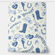 Un motif ludique dans des tons de bleu et de blanc présentant des éléments côtiers / de cowgirl (botte de cowgirl, chapeau, fer à cheval, cheval, étoiles, nœuds, cerises, hippocampe, étoile de mer, coquillage, typographie howdy, yeehaw) comme décoration de fête côtière / plage / événement pour l'enterrement de vie de jeune fille, la douche de mariée, l'anniversaire, la fête de fin d'études, etc.