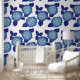 Papier Peint Motif chic bleu et blanc à la florale