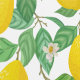 Design décoratif d'un motif de citrons jaunes juteux sur des branches avec des feuilles verts et des fleurs blanches délicates sur un arrière - plan blanc. Vous pouvez modifier la couleur de l'arrière - plan en cliquant sur le bouton "Personnaliser" puis sur l'inscription "Cliquez pour customiser plus loin".