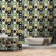 Papier Peint Motif de cercles vert beige brun de moutarde noire