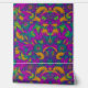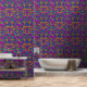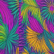 Un motif de fleurs tropicales aux teintes violettes, vertes, jaunes et oranges vives et colorées. Les pétales et les feuilles fluides créent un design dynamique et énergique, parfait pour une ambiance tropicale ou estivale.