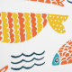 Cette décoration d'art folklorique est composée d'un motif de poissons de baignade orange, jaune et turquoise.