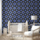 Ce papier peint unique présente un motif Art déco classique en bleu marine clair et noir. Design géométrique vintage recréé par Alma Wad, il ajoute une touche d'élégance et de sophistication à toutes les chambres, ce qui en fait un choix parfait pour ceux qui apprécient le style intemporel et l'art complexe.