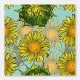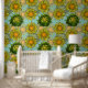 Papier Peint Motif de tournesol jaune avec feuillage et bourgeo