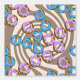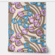 Des beignets à glaçage rose et bleu avec des arroses sur un arrière - plan tourbillonnant de café.